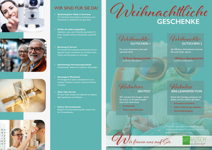 Innenseite links wahlweise mit Leistungsmerkmalen oder Newsblock