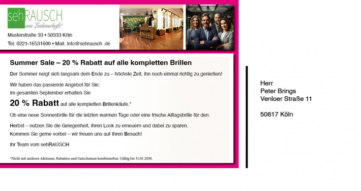 • Personalisierung Adressteil (bis 1000 Adressen)